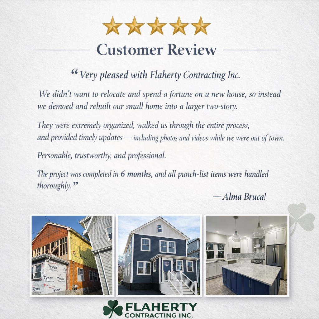 Grateful for clients like Alma & Von who trusted us with their home. Clear communication, quality work, and seeing it through to the very last detail — that’s what we stand for. Thank you for choosing Flaherty Contracting Inc. ☘️ #HomeAddition #FullGutRenovation #TwoStoryHome #HomeExpansion #RebuildNotRelocate